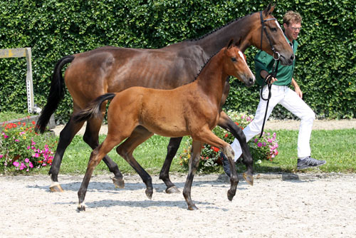 Jirsinaa represents the influential Sinaa-line and is therefore a close relative to the Grand Prix jumpers Vivaldi K (s.Indoctro), Modesto (s.Grandeur), Emmerton VDL (s.Emilion) and MacKinley (s.Goodwill). Her dam Fransinaa (s.Indoctro) is a sibling to the Grand Prix-jumper Sietse (s.Monaco) ridden by Licinio Grossi (ITA) as to the young Champion du Sinaa (s.Modesto) that competes in 1.35m classes. Both bred out of granddam Narsinaa. Narsinaa also produced twon elitemares who passed the maretesting, Darsinaa with 78 points and Ambersinaa with 76 points. This year sire Arezzo VDL made a successful 1.60m debut with rider Jessica Kürten but also made his mark as a breeding stallion with some exceptional offspring at regional and national shows. |