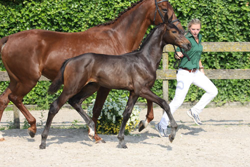 The dam Elottie van de Klamershoeve is a full sister of the Small Tour-dressage horse Pylottie W, who is showed by Femke Beljon. Granddam Hylottie W produced multiple third level-dressage horses and a stallion by Houston that was selected for the stalliontest. From this famous Lottie/Zottie-line also derives the fourth level dressage horses Filottie (s.Fürst Piccolo) and Edmonton (s.Rancouver) as well as the Small Tour-dressage horses Zahan (s.Marco Polo) and Ultimo (s.Feuerschein I). Sire Florencio sparkled in the Small Tour and was elected twice to be the World Champion of the young dressage horses. As a stallion he inherits his qualities dominantly, think of progeny like Charmeur, Borencio and Zandor. Dams sire Jazz has proven himself in competition and breeding at the highest level. |