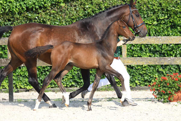 The phenomenal Totilas is the best representative for this well-known Minka-damline. In the pedigree of this promising Kayan we see the Totilas-son Governor united with this prominent family. Dam Zheminka is sired by the valuable breeding stallion Flemmingh and is a half sister of several 1.30/1.35m showjumpers. Besides many showjumpers this damline is also known for producing the KWPN approved stallion Kelvin (s.Flemmingh), who was performing fourth level dressage. Adelinde Cornelissen is training the popular 4yo stallion Governor. He was reserve champion at the KWPN stallion show and is bred out of a full sister of Adelinde her top mount Jerich Parzival (s.Jazz). Kayan is out of his first crop of foals. |