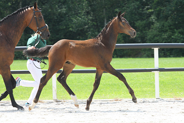 The striking Guardian S is a very promising stallion for both sport and breeding, thanks to his great qualities and origines. His first crop of foals seems to meet the high standards as well. Ling Yao represents a solid damline. His dam Chanel E scored high marks in the mare testing. Granddam Wendelin was invited for the national mare inspections, passed the mare testing with 80.5 points and was successful on third level. Her son Helmer (s.Charmeur) is selected for the KWPN performance test and several daughters passed the mare testing. The damline leads back to Kerrodelin, who produced four horses on third level and is also granddam of the promising NRPS approved stallion Crosby (s.Chippendale), who was selected for the KWPN performance test as a 3yo. |