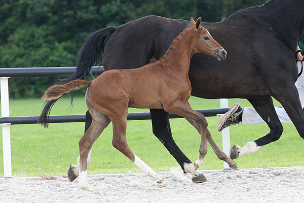 This colt Lancelot is named after the international sport- and breeding stallion Lancelot (s.Voltaire), who was successful with Pieter Koopmans and is the most famous representative of this family. Dam Notre Dame is a full sister of Lancelot and performed on 1.30m level. She already produced the international 1.45m showjumper Tsarina (s.Onze Fons) of Gianluca Rohner as well as the international 1.40m jumper Unique (s.Le Tôt de Semilly) of Giovanni Consorti. Granddam Diadeem is also known as dam of the international sport stallion Montevideo, who?s another full brother of dam Notre Dame, the international 1.50m jumper Rochester (s.Calvin Z) and the 1.40m jumper Zirkonia (s.Sam R). Besides that, Diadeem is granddam of the Grand Prix showjumper Welldone (s.Calvados). |