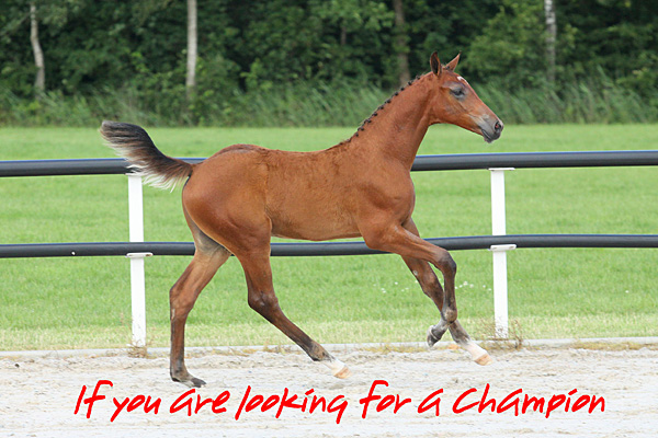Luciano was champion of the foal inspection of Harich and is sired by the promising 5yo Global Express. Ridden by Lennard de Boer this top talent showed a lot of quality in the stallion competition. Via the international sport- and breeding stallion Indorado this damline leads back to granddam Jourwies, who competed at 1.30m level. She also produced a 1.30m jumper and is granddam of the international 1.45m showjumper Courweis VDL (s.Candidat) of Malin Ahlqvist. Products from this immediate damline include the KWPN approved stallions Hampton VDL (s.Baltic VDL) and Wizzerd W V (s.Indoctro), who performed on Grand Prix level with Jeroen Dubbeldam, as well as the international 1.45m showjumpers Beaumont WV (s.Ukato) and Alisha Keys (s.Matterhorn). |