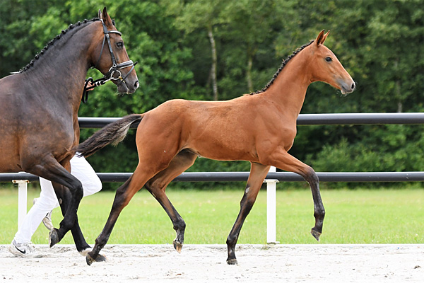 Ridden by Barbara van Groningen dam Eukalypta was competing in fourth level classes successfully. She is the fourth mare in line with performances on third level or higher. As a 4yo Eukalypta showed her talent in the mare test, for which she passed with 79 points. This damline leads back to the fourth level dressage mare Gauriante, who’s dam of four third level horses. From this damline also originate the international dressage horse Cyrano (s.O.Mozart), the Small Tour horse Ravel (s.Jazz) and the fourth level horse Socrates (s.Flemmingh). This well moving Mon Espoir DSD is sired by the promising Giovanni, who stood out in the performancetest and is making a good impression with both his first offspring and his sports results |