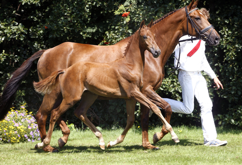 Geen enkele hengst wist zó’n stempel te drukken op de veulenkeuringen dit jaar als Pavo Cup-winnaar Vivaldi. Hij leverde acht provinciale kampioenen, waar deze Deejay er één van is. Moeder Padegini is evenals grootmoeder Degini in de Z1 dressuur geklasseerd. Moedersvader Farrington leverde diverse succesvolle dressuurpaarden zoals Ceylon, Limited Edition en Luxaflex. Overgrootmoeder Legini bracht diverse Z2 paarden en is grootmoeder van het nationale dressuurpaard Othello (v.D-Day) van Tonnie Huberts. Verder voert de moederlijn het bloed van Wachtmeester, Roland en Baronet. |