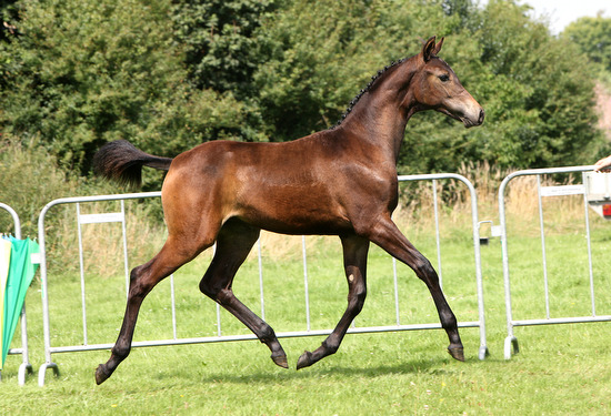 De te vroeg overleden hengst Veron sprong zelf overtuigend in de hengstencompetitie. Zijn nakomelingen gooien keer op keer hoge ogen op de veulenkeuringen en lijken veelbelovend. Deze Eugenie is gefokt uit de merrie Veroniek, een dochter van springpaardenleverancier Concorde die zelf ook internationaal heeft gesprongen. Een volle zus van Veroniek springt in het Z. In de derde generatie zien we het bloed van Balder, die ook de KWPN-hengst Frère en diverse nationale sportpaarden bracht. Overgrootmoeder Defanja stamt af van Wolfgang, die ook internationale springpaarden als Handel II, Extreme en Fior leverde. |
