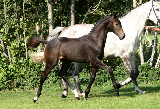 De Up to Date-dochter Bumosa werd dit jaar kampioene op de Centrale Keuring in De Wolden. Deze Eumosa is uit dezelfde moeder gefokt, namelijk Umosa. Zij behaalde zelf 80,5 punten in de merrietest. Moedersvader Cavalier sprong zelf onder de naam San Patrignano Mister op het hoogste niveau en leverde al meerdere Grand Prix-paarden. Grootmoeder Nirmosa stamt af van de topvererver Indoctro. Via Adios gaat de moederlijn terug op de merrie Omosa, een volle zus van de KWPN-hengst Rembrandt. Vader van Eumosa is de zeer patente Calippo-zoon Vittorio, die inmiddels nationaal springt. |