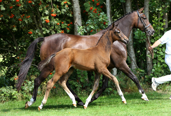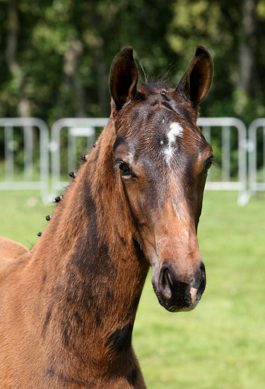 De sterk bewegende hengst Wonderboy komt uit de befaamde Balia-stam en hij werd zelf als veulen verkocht op deze veiling. In de hengstencompetitie viel hij onder John Tijssen op met zijn extra bewegingskwaliteit. Deze Erinko-Weering is gefokt uit een elitemerrie van Rousseau, die voor de fokkerij zeer waardevol blijkt te zijn. Zelf won Rousseau een zilveren medaille op het WK in Verden. Grootmoeder Lyrisch liep zelf Z-dressuur en ze bracht van Jetset-D al een Z-dressuurpaard. In de derde generatie zien we de hengst Farmer, die zelf zowel in de nationale spring- als dressuursport presteerde. Overgrootmoeder Vorinka liep een goede IBOP van 84 punten. |
