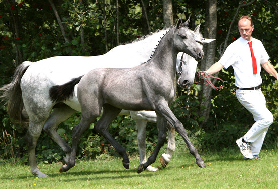 Eyecatcher Up to Date maakt veel indruk met zijn eerste nakomelingen op de merrie- en hengstenkeuringen. Zelf valt hij iedere keer op met zijn excellente springtechniek en grote potentie. We zien hem hier gecombineerd met de CK-kampioene van Groningen 2005, Vaniki. Haar vader Calido I leverde zelf goede prestaties in de internationale sport en is één van de meest vooraanstaande verervers uit Duitsland. Grootmoeder Iniki leverde het bekende Olympische springpaard Promise Me (v.Lauriston) van Ian Millar en is zelf een halfzus van het Grand Prix-springpaard Edison (v.Zuidhorn). Deze bekende Niki-stam staat al generatie-lang bekend om haar goede sportpaarden. |