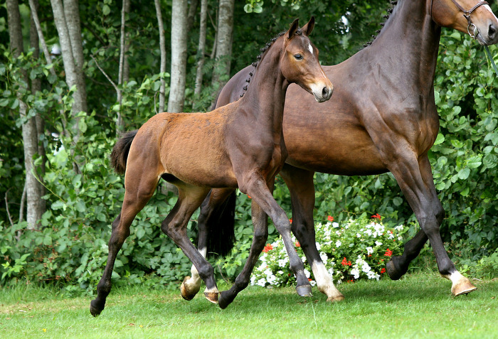 In zijn sportcarrière heeft blikvanger Sandreo onder meer de Pavo Cup en de hengstencompetitie op zijn naam weten te schrijven. Daarnaast staat hij bekend om de vererving van mooie, bruikbare paarden met fijne karakters. We zien hem hier gecombineerd met de merrie Seraldine, die meerdere achten behaalde in haar IBOP. Moedersvader Dolany loopt op Grand Prix-niveau en doet ook in de fokkerij goede zaken. Via Loutano, Lagos en Carneval gaat deze moederlijn terug op de merrie Huflattich (v.Marlon xx), die ook de in Duitsland gekeurde hengsten Centurion Montfort (v.Capitol I) en Sandro (v.Silvester) bracht. Uit deze directe lijn komt onder meer de hengst Coronado. Uit deze merrielijn komen in Duitsland 54 goedgekeurde hengsten. Holstein stam 730B |