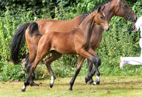 Uit deze moederlijn zijn al verscheidene goed presterende springpaarden voortgekomen. Zo bracht grootmoeder Nadine het Grand Prix-springpaard Seraldo (v.Corland) van Clara Lindner en is overgrootmoeder Haldine een halfzus van de internationaal springende KWPN-hengst Faldo (v.Purioso) van Albert Zoer. Haldine is ook grootmoeder van het 1.45m-springpaard Urlando (v.Indoctro) en het 1.40m-springpaard Woody (v.Cantos). Grootmoeder Nadine sprong in de klasse Z. Vader Indoctro heeft een ongekend aantal producten in de internationale sport gebracht en moedersvader Chin Chin schitterde op de Olympische Spelen en heeft zijn internationale verervingskracht ook reeds bewezen. Hoctro is uitgenodigd voor de Nationale Veulenkeuring. |