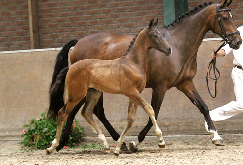 De aansprekende Dream Boy maakt veel indruk met zijn sterke bewegingsvorm en dressuuraanleg. Hij presenteert dit jaar zijn eerste veulens. Hubertus is gefokt uit de merrie Rimona, die in het Z1-dressuur is uitgebracht. Zij is een halfzus van het Lichte Tour-dressuurpaard Silvan (v.Zeoliet), die bij het KWPN tot de tweede bezichtiging kwam en onder Georges Bitar dit jaar deel nam aan de Pan Arab Games. Grootmoeder Gemona bracht daarnaast nog een derde bezichtigingshengst en een Z2-dressuurpaard. Moedersvader Lennard staat vooral bekend als springhengst maar leverde ook het Grand Prix-dressuurpaard Talent. |