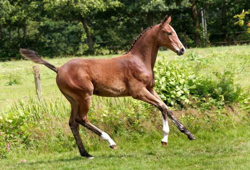 Inarezza Ryal K is een charmant veulen uit een goede stam. Dit voorjaar werd de Zapatero VDL-zoon Flying Dream met de topscore ingeschreven bij het KWPN. Hij heeft dezelfde grootmoeder als deze Inarezza Ryal K. Moeder Uryal leverde al het 1.40m-springpaard Rahmannshof Before (v.Tenerife VDL) van Maximilian Weishaupt. Uryal is een volle zus van het nationale springpaard Vurryal K. Moedersvader Matterhorn leverde internationale springpaarden als Veldheer, Talina V en Vita R. Uit deze directe moederlijn komen ook de internationale springpaarden Surryal (v.Kennedy) en Sistral (v.Lincoln). Onder Jessica Kürten etaleert vader Arezzo VDL zijn grote kwaliteiten op 1.50m-niveau en ook in de fokkerij weet hij zich te onderscheiden. |
