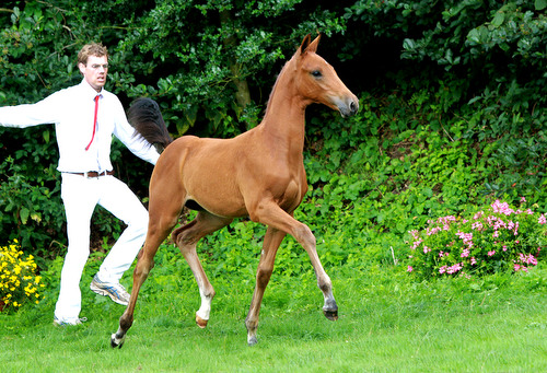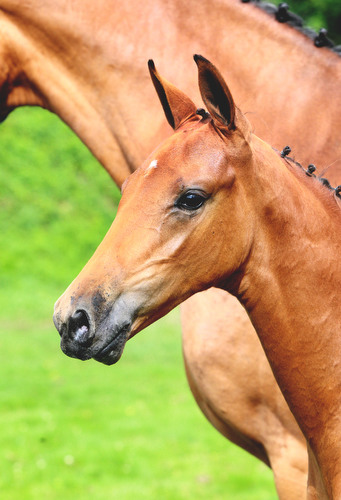 Dit atletische, bloedgemaakte hengstveulen was een echte blikvanger op de selectiedag. De nazaten van de Olympische tophengst Cardento schieten in de internationale sport als paddenstoelen uit de grond. Enkele voorbeelden van succesvolle Grand Prix-nakomelingen zijn Nice Stephanie, Kiara la Silla, Matrix, Cyklon en Traffic Boy. Moeder Nizza is een staatspremiemerrie afstammend van de internationale sport- en fokhengst Corofino I en ze vertegenwoordigd de Holsteiner stam 579. Nizza is een halfzus van de Zweedse gekeurde hengst Cagancho (v.Calido I). Grootmoeder Varan is ook grootmoeder van de Grand Prix-hengst Laganscho (v.Lennon) van Wassim Anzarouti en de Holsteiner hengst Leonid’s Jumper (v.Leonid). |