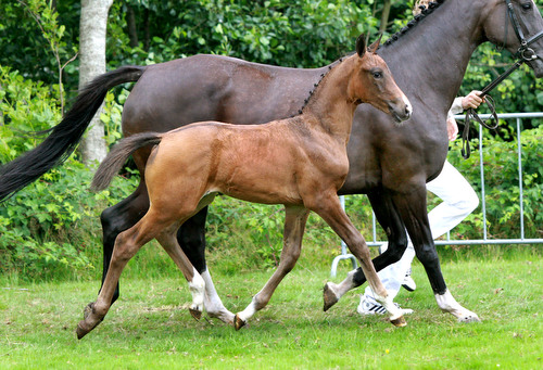 De veelbelovende hengst Don Tango B is dit jaar met Diederik van Silfhout afgevaardigd naar het WK voor jonge dressuurpaarden in Verden. Zijn eerste veulens lijken heel kwaliteitsvol, zo ook deze charmante en over veel houding beschikkende Ires-Marie. Moeder Thekla Marie liep zelf op de NMK en leverde al twee dochters die ruimschoots slaagden voor de IBOP. Ze stamt net als internationale dressuurpaarden als Uthopia, Sital, Uranium W, Special D en Broere Ufo af van de dressuurvererver Métall. De veelzijdig inzetbare grootmoeder Marie Louise is geëxporteerd naar Amerika en levert daar keuringstoppers die ook presteren, eerder bracht ze al het Z-springpaard Rinaldo (v.Kojak). |