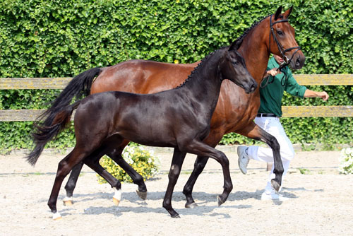 Deze beeldschone Jayda werd uitgeroepen tot kampioene van de dressuurmerrieveulens op de CK van Friesland en verdiende tevens een uitnodiging voor Ermelo. Ze is een halfzus van het beloftevolle ZZ-Licht dressuurpaard Cayenne (v.Flemmingh). Vader Desperado schitterde op het WK in Verden, won de hengstencompetitie en gooide hoge ogen in de Pavo Cup. Hij lijkt zijn grote dressuurtalent door te geven aan zijn nakomelingen. Via de topvererver en Grand Prix-hengst Jazz gaat de lijn terug op grootmoeder Madonna, zij leverde al een Z1- en Z2-dressuurpaard. Uit deze stam komen ook nationale dressuurpaarden als Up To Date (v.Welt Hit II), Wallstreet Shuffle (v.Polansky) en Zaquila (v.Rubiquil) evenals de KWPN-goedgekeurde hengst Ojasper (v.Hollywood) die internationaal sprong. |