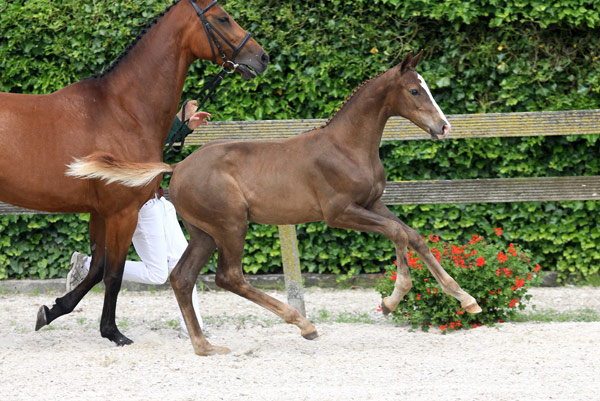 Moeder Filandra JR behaalde haar elitepredicaat dankzij een goede IBOP met zesmaal een 8 (totaal 79 ptn). Daarmee onderstreept ze de springkwaliteit die in deze moederlijn verankerd zit. Zo leverde grootmoeder Lilandra onder meer de internationale 1.45m-springpaarden Velvet (v.Indorado) van Abdulla Braik Al Marri en diens volle broer Grey Star van Gianni Govoni. Kwiltland JR stamt af van de Grand Prix-geklasseerde hengst Arezzo VDL, die eerst onder Jessica Kürten en nu met Jur Vrieling furore in de internationale sport maakt. Arezzo VDL heeft reeds bewezen veel springaanleg door te geven aan zijn nafok en dat kan ook zeker gesteld worden van de internationale springpaardenleverancier Indoctro, die als moedersvader zijn inbreng heeft in deze pedigree. BTW plichtig nee. |