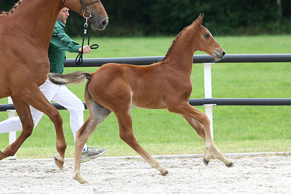 In de pedigree van Leicester zien we de genetisch interessante verrichtingstopper Grand Slam VDL, die een goede indruk maakt met zijn veulens, gecombineerd met een vooraanstaande Limburgse sportstam. Moeder Ocorine S bracht onder meer het internationale 1.35m-paard Bonzini S (v.Contact van de Heffinck) van Kayleigh Watts. Zelf is ze een halfzus van het internationale 1.45m-paard Vaillant S (v.Heartbreaker) van Lauren Tisbo en grootmoeder Illorine S is ook grootmoeder van het 1.50m-springpaard Acanthus B (v.Pino) van Céline Stauffer en de 1.40m-springende Samorano (v.Concorde) van Emile Tacken. Uit deze directe lijn komen tevens internationale springpaarden als Hippo's Esprit de Lancom (v.Almé Z), Zorro S (v.Casco) en Twitch S (v.Pitcher). BTW plichtig ja. |
