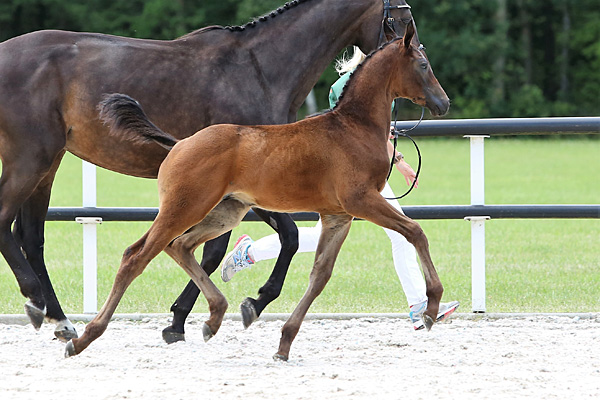 Deze eyecatcher stamt af van de succesvolle Lichte Tour-dressuurhengst Ebony, die onder Vai Bruntink al tot fraaie resultaten gekomen is. Ook als fokhengst bewijst deze Painted Black-zoon zijn meerwaarde en hij is hier gecombineerd met de merrie Salaika L. Via de veelzijdige vererver Wolfgang gaat deze lijn terug op de Porter-dochter Thalaika, zij bracht een Z2-dressuurpaard en IBOP-toppers van Rossini (92 punten) en Nimmerdor (90 punten). Ze is bovendien grootmoeder van het ZZ-Zwaar dressuurpaard Grand Cru Hoeve’s Atlantus (v.Prestige VDL) van Julie de Baerdemaker en het ZZ-Licht dressuurpaard Vloraikos (v.Florestan I). Overgrootmoeder Technue xx zorgt voor de nodige bloedinbreng. Niet BTW-plichtig / geen landbouwverklaring No subject to VAT/no agriculture declaration |