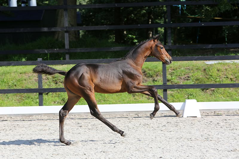 Onder Lauren Crooks presteert de voorheen door Nathalie van der Mei uitgebrachte Grand-Dessert nu op internationaal 1.50/1.55m-niveau en deze Radina is gefokt uit haar jonge halfzus. Vader Dakar VDL bewijst veel springaanleg door te geven aan zijn nakomelingen. Niet BTW-plichtig |